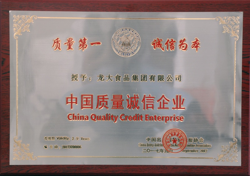 龍大集團(tuán)榮膺“2017中國質(zhì)量誠信企業(yè)”獎(jiǎng)